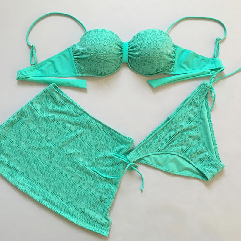 3 Pieces Swim Suit Skirt Swimwear Women Mesh Bikini Set Sexy Beachwear Swimming Suit For Women Push Up Bathing Suit 2017