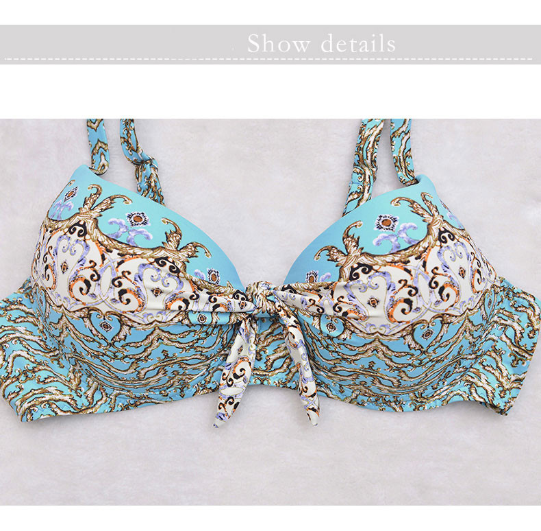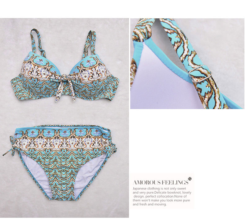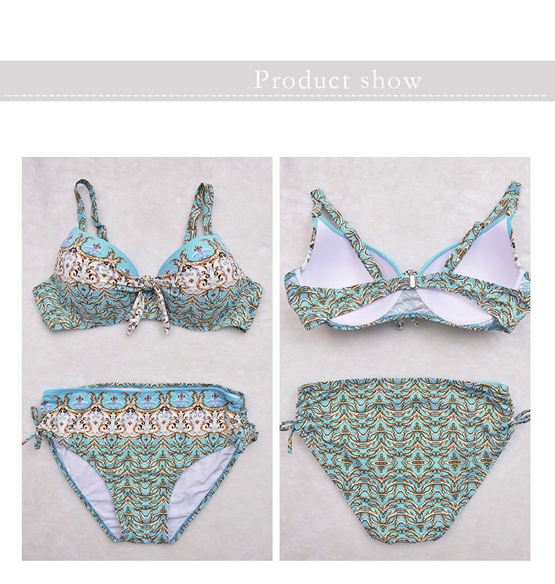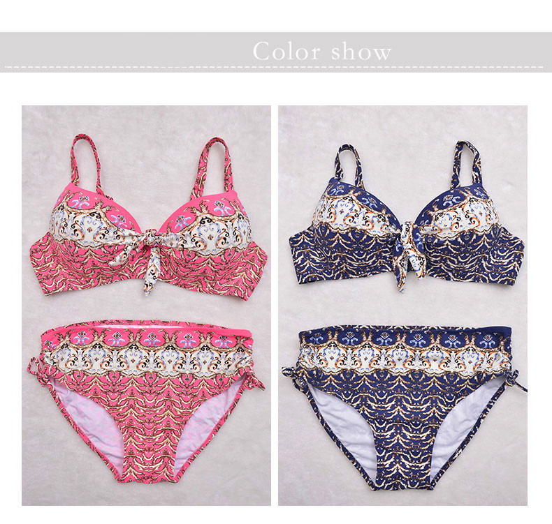 Features       1.2016 April newest arrivals for this summer.                 2.High grade Fabric, Colorfast and Healthy to your skin.                 3.Deep v design,Show your beautiful bust curve.                 4.Shoulder straps with suitable width ,Comfortable to wear.                 5.Breathable liner cloth,Protect your privates considerately.                 6.High Fine workmanship,High quality Swimwears.                 7.The important  is You deserve to have it !!!           [Swimwear Material] 82% Nylon + 18% Spandex [Swimwear Pattern]Print [Swimwear Size] 48-56 [Swimwear Style] Bikini [Swimwear Function] Push Up bra , Underwire,Adjustable Shoulder straps.