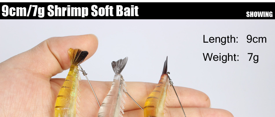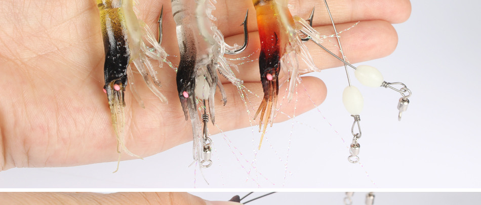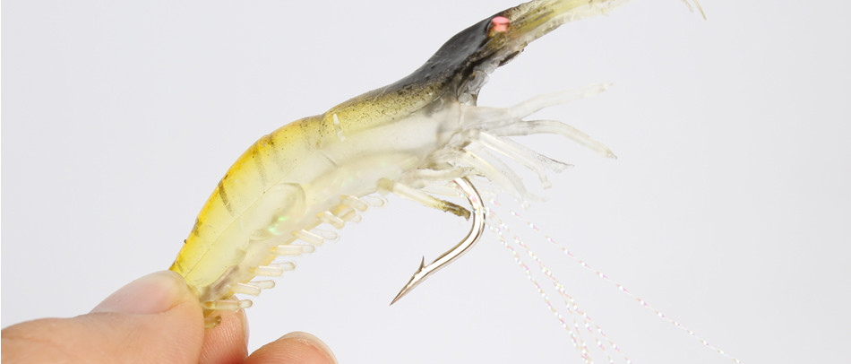 Luminous Artificial Shrimp mimics a live shrimp perfectly but is designed to be even more effective. The soft fishing bait is propelling itself forward, just like a live shrimp. What\'s more, this slow-sinking soft bait is ideal for most saltwater fishes.