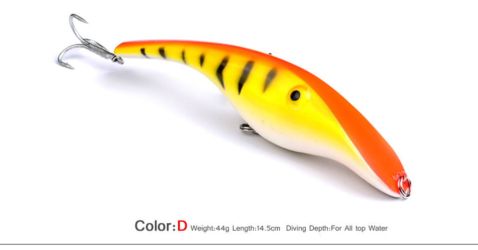1pc Fishing Bait Exported to Usa Market 3D Fishing Tackle 8 color 44g/14.5cm High Quality Fishing lure With 2/0# Hook DW307