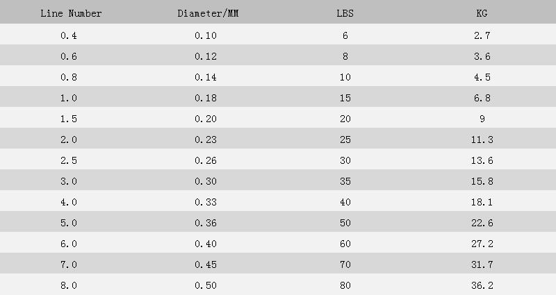 - Wide range of choices in tensile strengths: From 6 lbs to 80 lbs