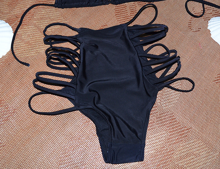 2017 newest Halter top push up high waist bikini set Hollow triangle sexy swimwears women strappy Bandage swimsuit bathing suit