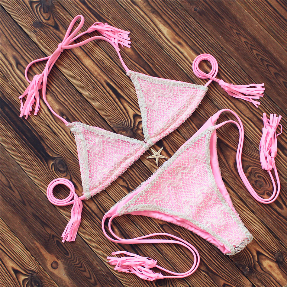 Bikinis 2017 Sexy Swimsuit Female Bandage Swimwear Women Brazilian Bikini Set Halter Retro Beach Bathing Suits Swim Wear Biquini