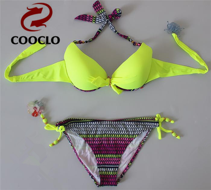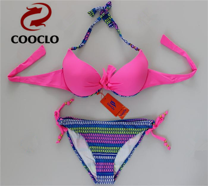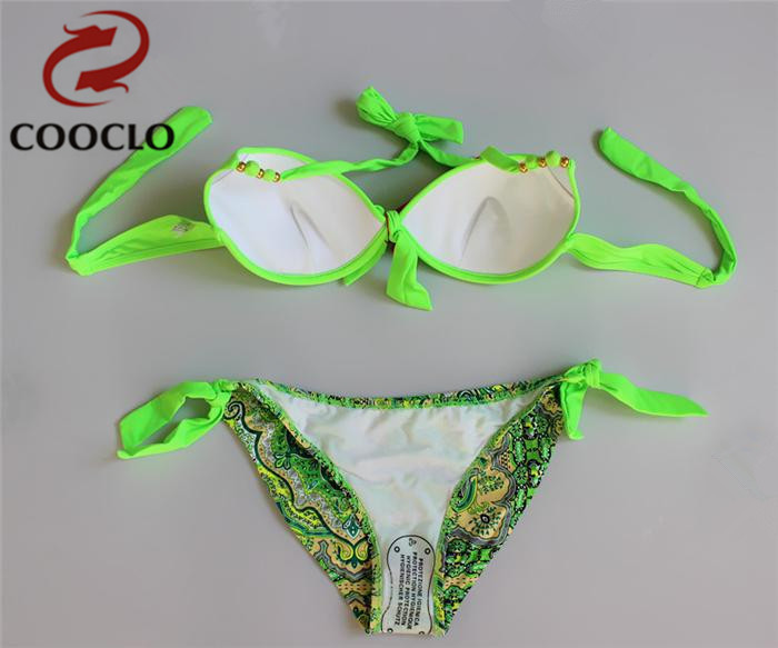 COOCLO 2016 women hot bikini, push up swimwear explosion models bandeau biquini vintage brand name women bikini set swimsuit