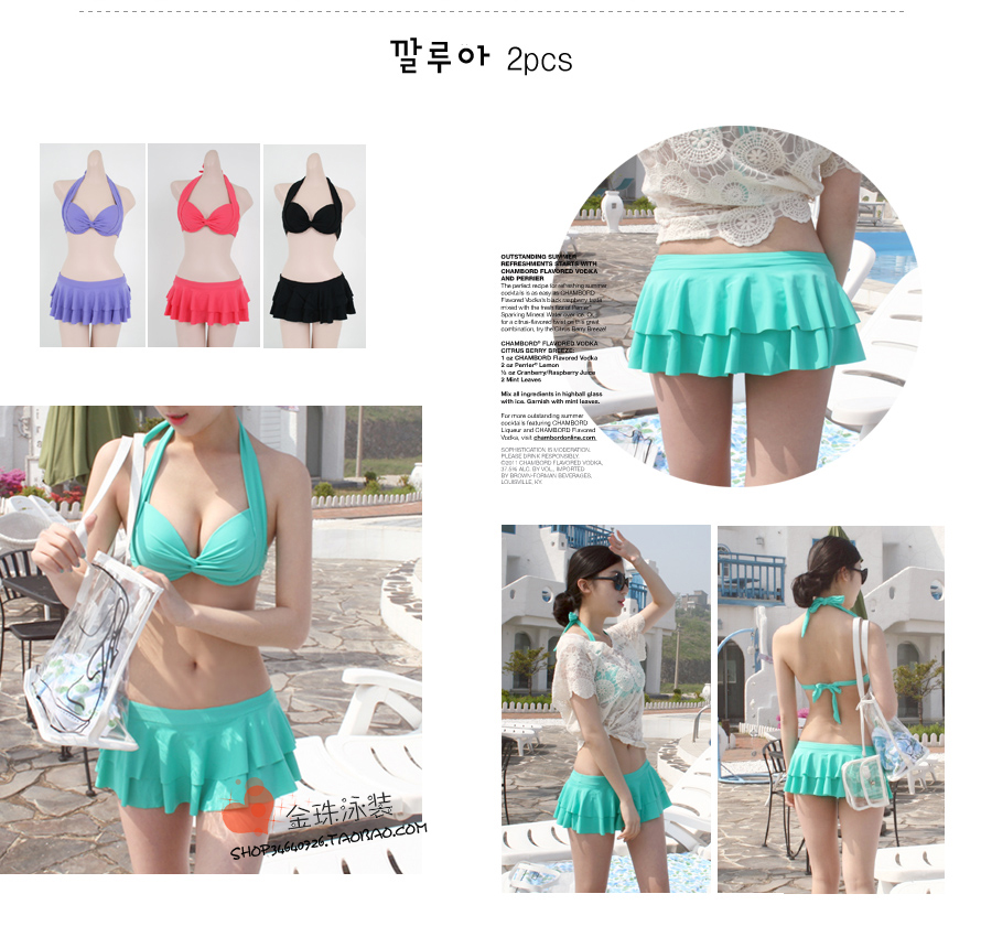 Free Shipping 2017 New Bikini Set Woman's Swimsuit Pure Color Small Skirt Three-piece Bikini Beach Hot Biquni Push Up Swimwear
