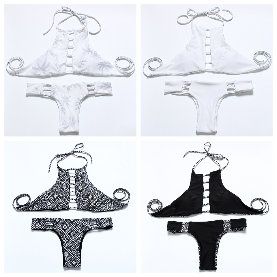 JABERAI Swimsuit 2017 Sexy Brazilian Bikini High Neck Floral Mesh Sheer Thong Swimsuit Swimwear Flower Print Beachwear Bandage