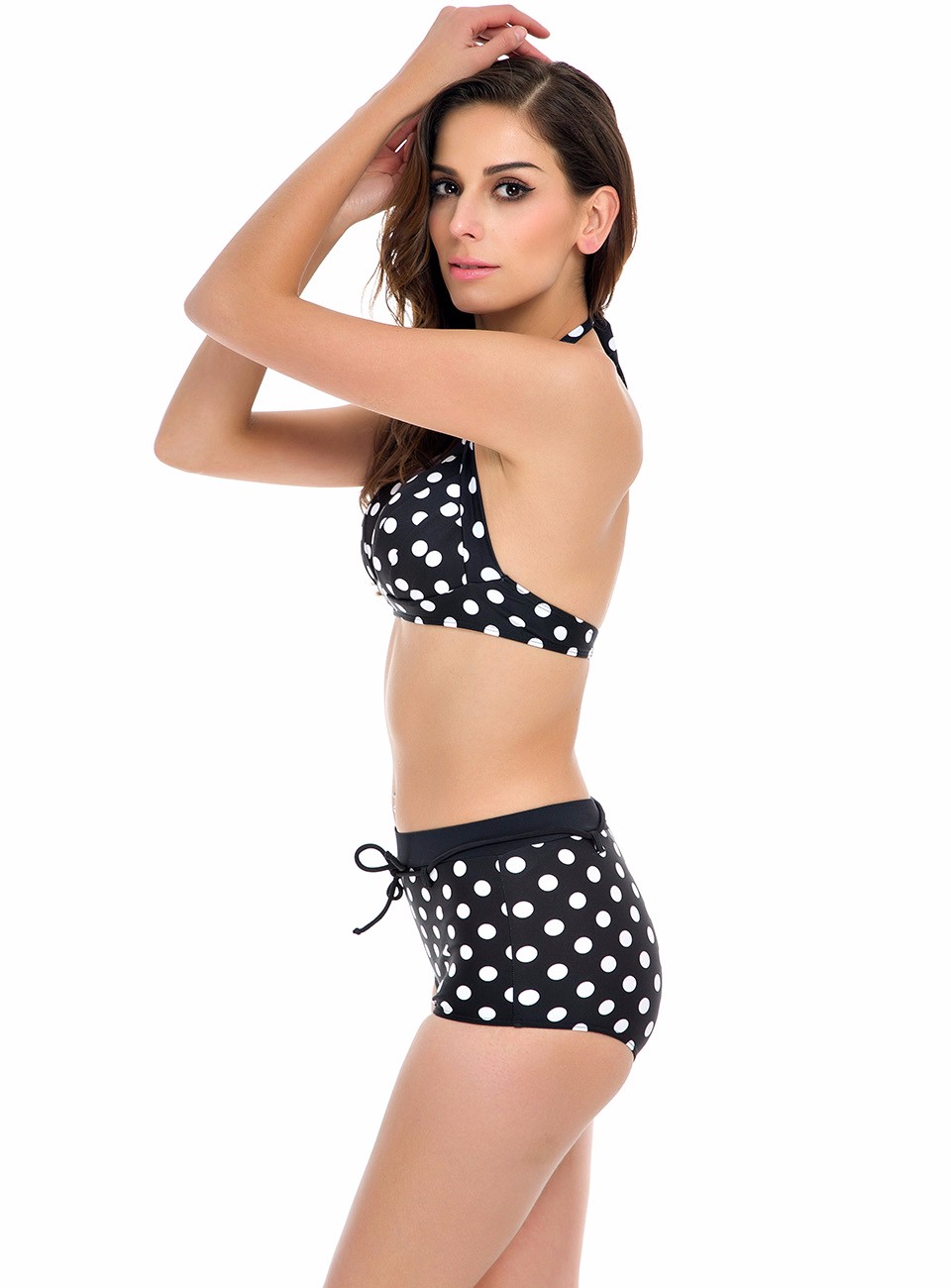 NAKIAEOI 2017 New Bikini Women Swimsuit Plus Size Swimwear High Waist Bathing Suit Push Up Bikini Set Beach Padded Dot Swim Wear