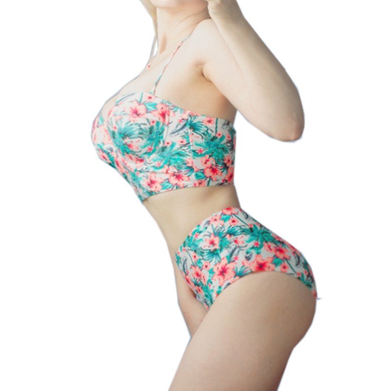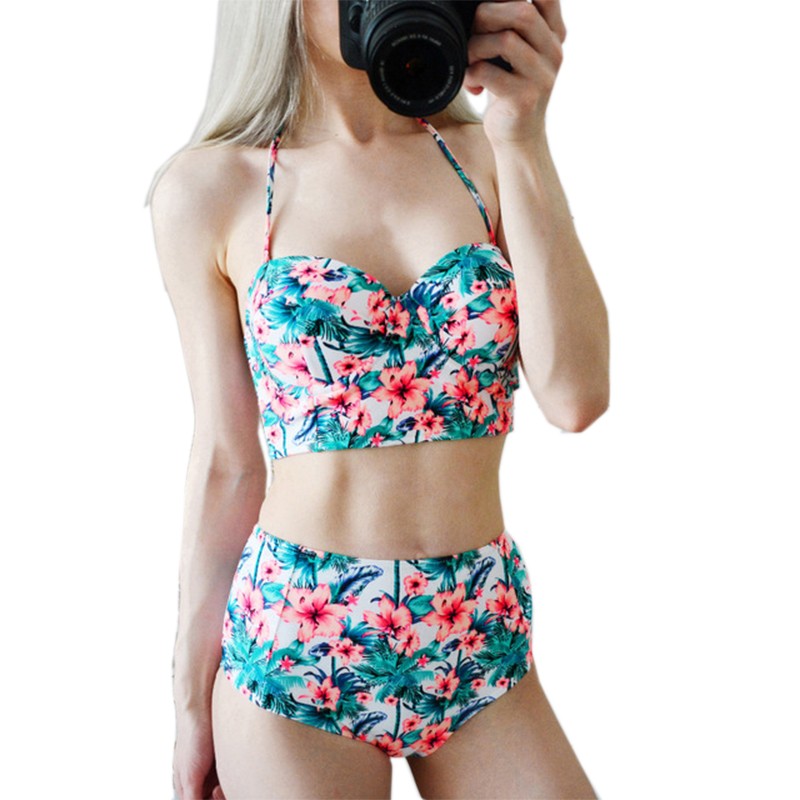 Sexy Floral Print High Waist Swimsuit 2017 Bikini Push Up Swimwear Women Vintage Biquini Bathing Suit Maillot de Bain Femme XXL