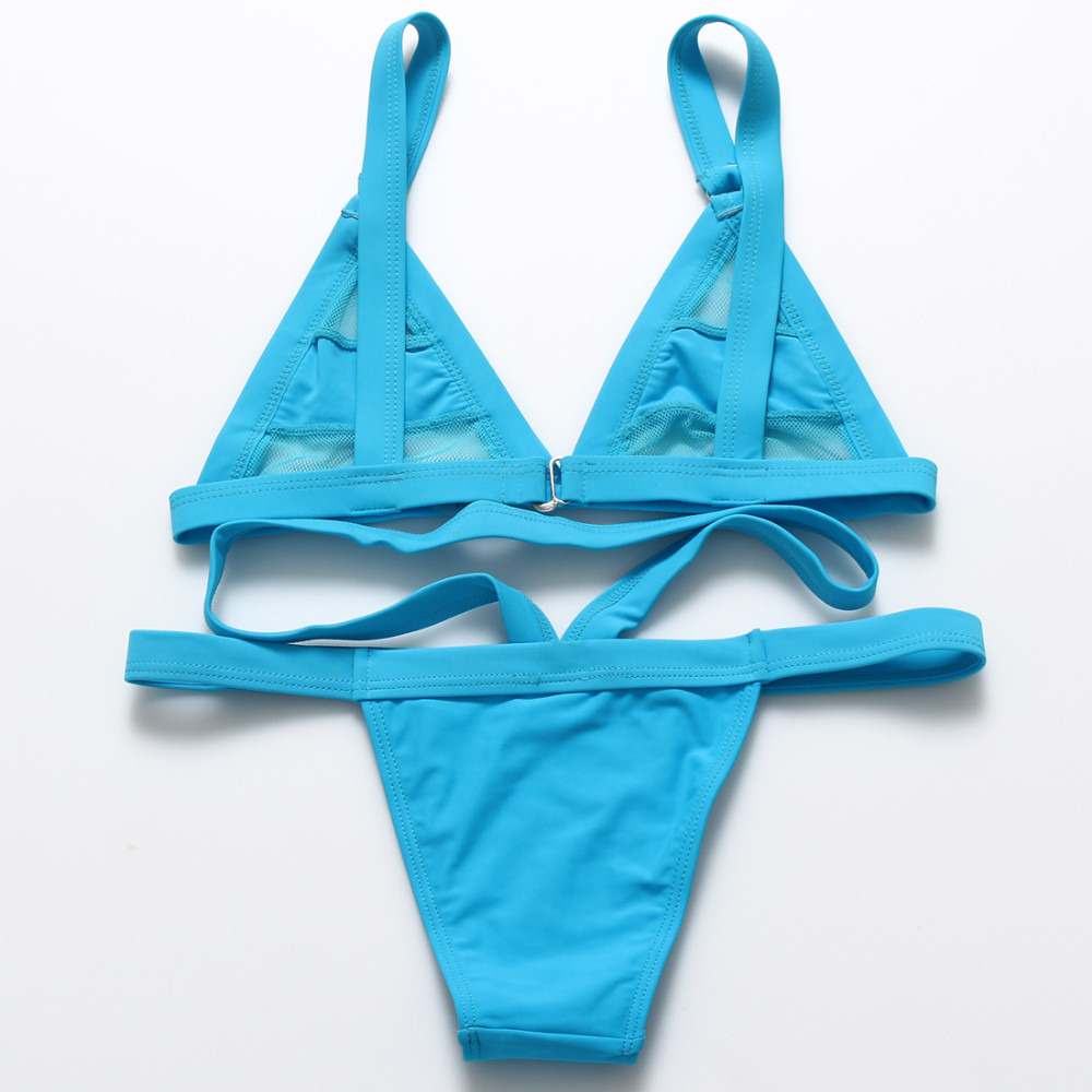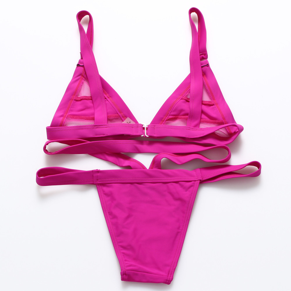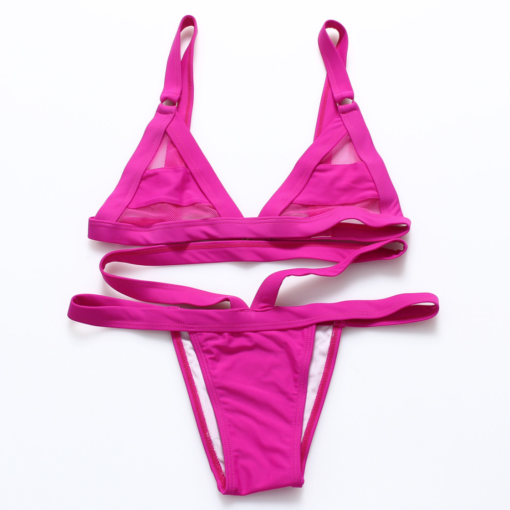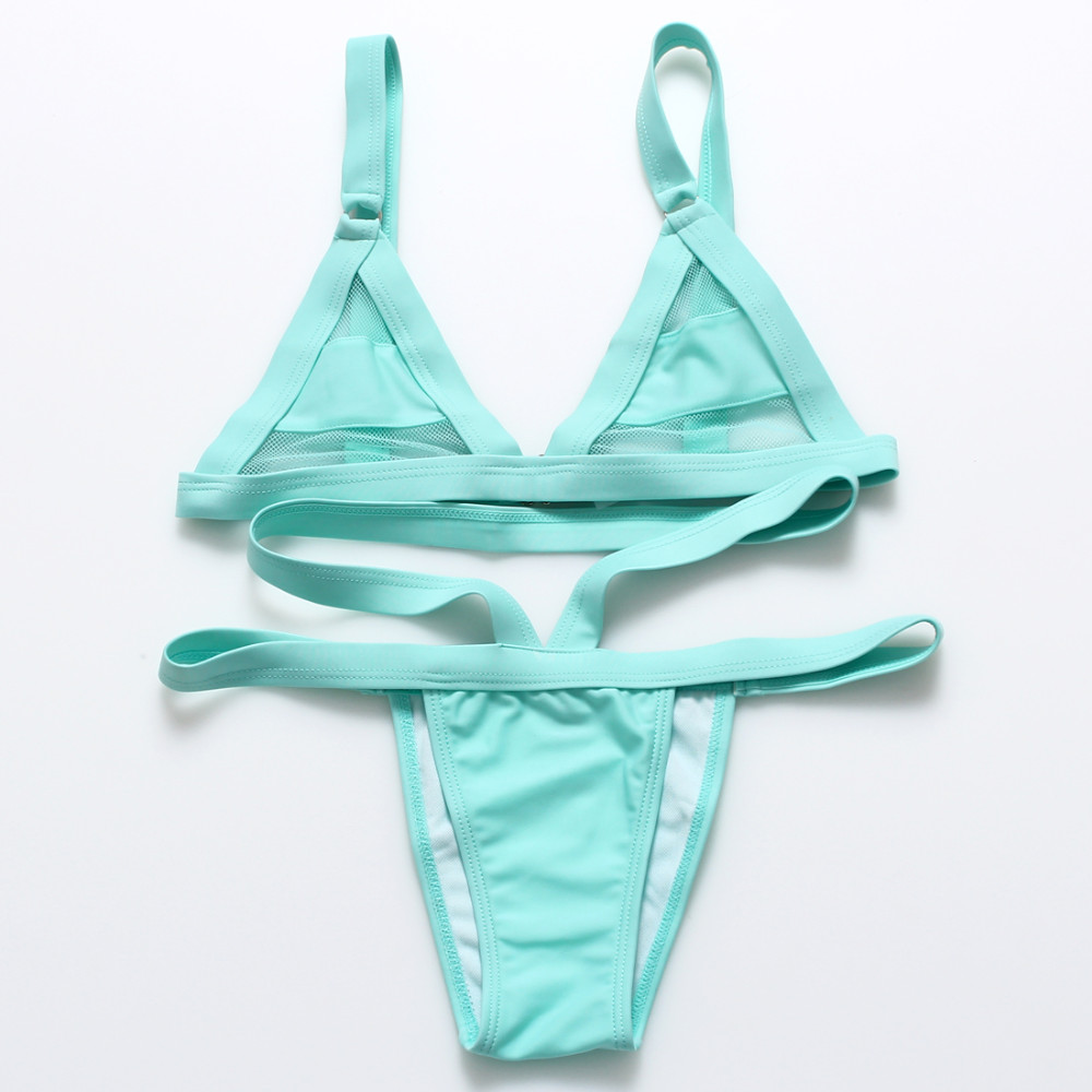 XS-XL Women's Sexy Mesh Bikini Set Hollow Out Tops Bandage Swimsuit Strappy Swimwear Sexy Mini String Thong